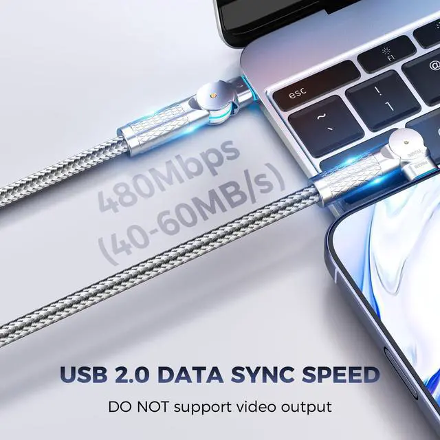 DATA TRANSFER: The usb c to usb c Braided cable 6.6FT -240W 2-Pack-Grey is built in E-marker chip, supporting 240W PD 3.1, QC 4.0 charging & USB 2.0 480Mbps data transfer. the type c charger cable supports high-speed charging up to 240W without battery damage when used with a compatible usb c charger. the c to c cable is a solid choice for users who prioritize fast charging, high safety, long reach and a touch of style ^^ Innovative 180 degree double head rotation