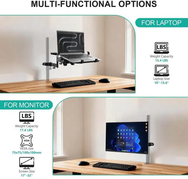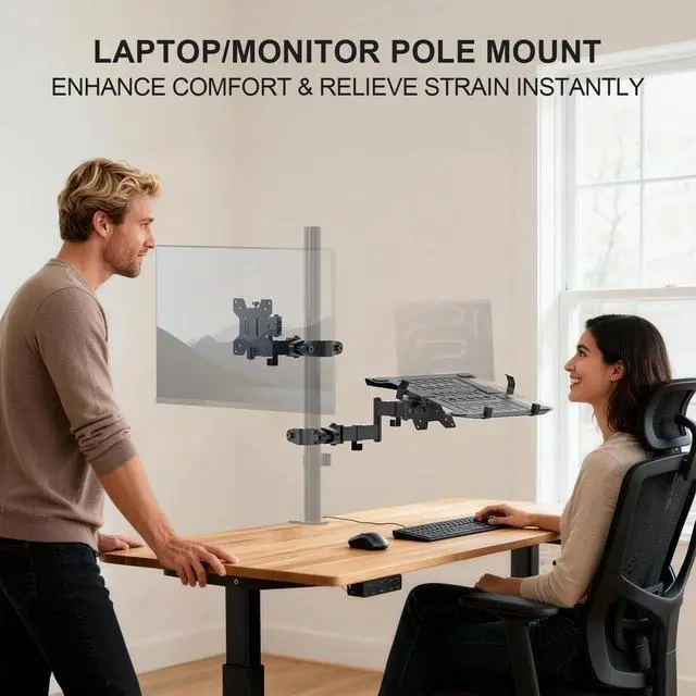 Universal Compatibility: The laptop pole mount fits pole diameters from 1.1" to 2.36" and supports 10" 15.6" laptops (max load 15.4 lbs). Ideal for office workers, remote freelancers, and RV travelers, it works seamlessly with desk poles, car headrests, and small-space workstationsperfect for dual-screen setups, mobile offices, or on-the-go productivity ^^