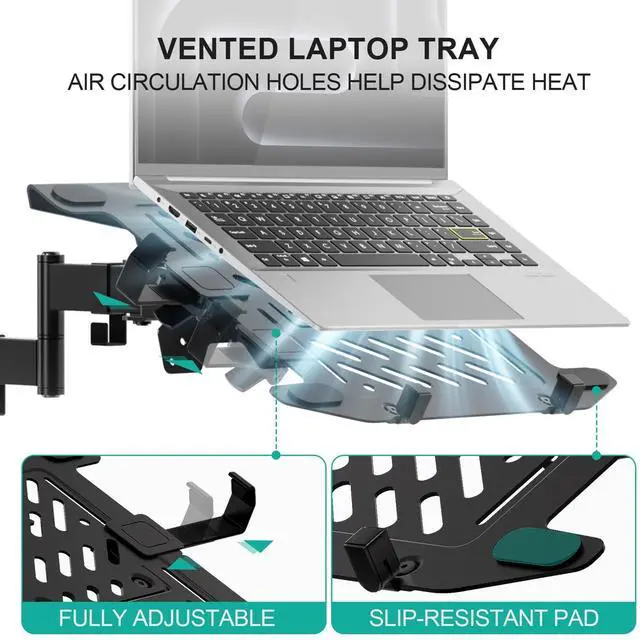 Secure & Stable Hold: Equipped with adjustable heavy-duty clamps, the mount locks your device firmly in placeno wobbling, slipping, or accidental drops. Perfect for bumpy car rides, busy office environments, or shared workstations, it ensures your laptop stays safe whether youre typing furiously, presenting to a team, or driving to your next destination