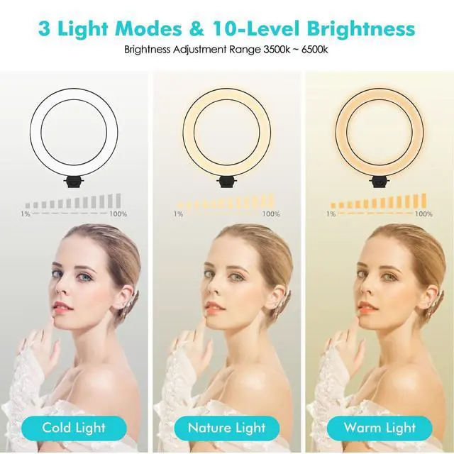 ^^ Ring Light: The 8" ring light uses USB Power Supply. Brightness and color temperature adjustable.