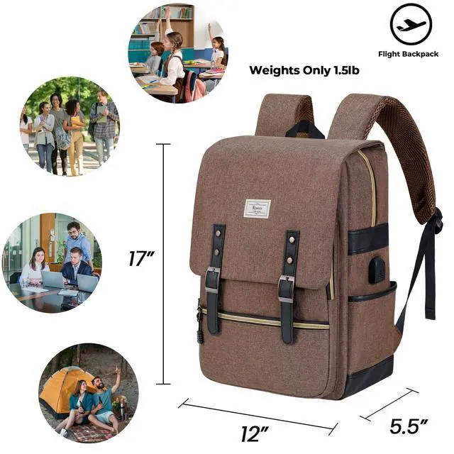 Portable & Perfect Dimensions: Ronyes backpack, sized at 12* 5.5 *17 inches can hold various items like books, documents, laptops, water bottles, snacks, and more. The vintage laptop bag weighs just 1.5 pounds, it effortlessly fits under airplane or bus seats. Ideal for daily use, short trips, or commuting, this bookbag maintains a sleek appearance even when fully packed ^^
