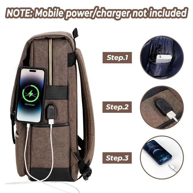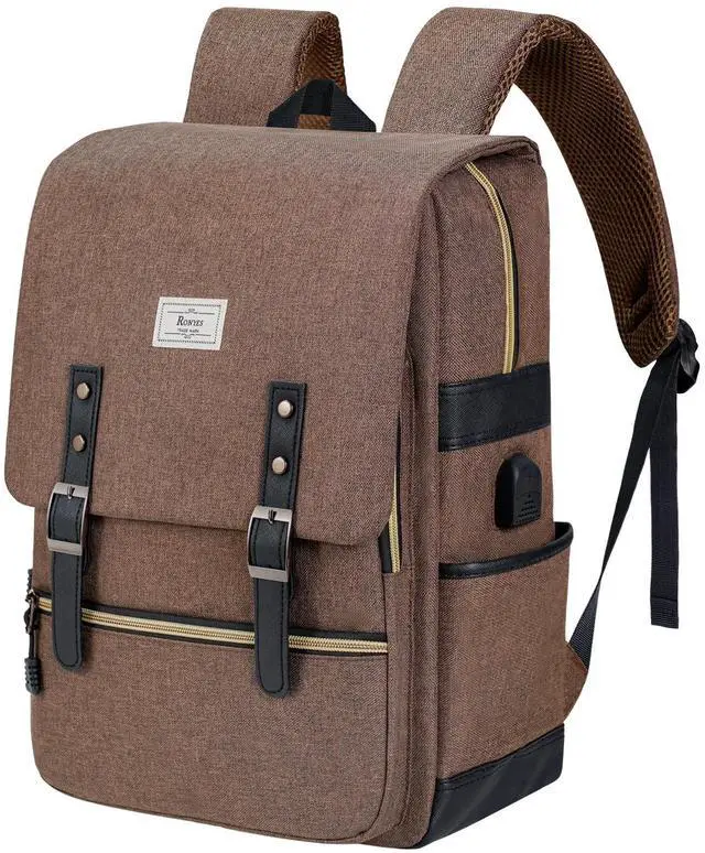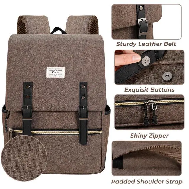 Convenient & Charge On-The-Go: Stay powered on the move! Ronyes vintage laptop backpack features an external USB charging port and a built-in charging cable. Insert your mobile power into the dedicated pocket, connect it to the port, and charge your devices on the go. Perfect for long trips, outdoor activities, or