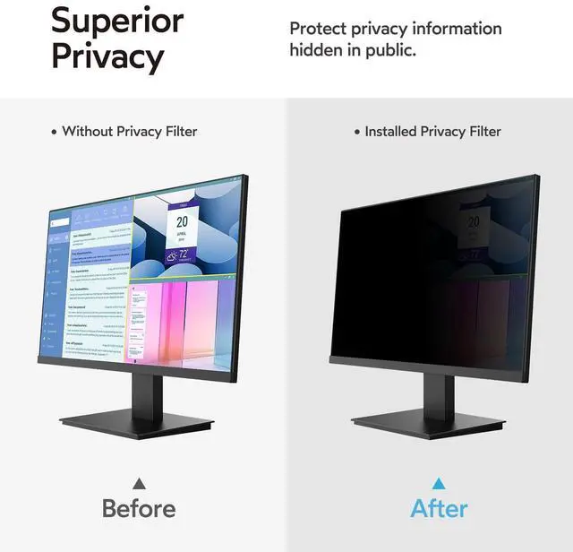 Use Anytime/Anywhere: Our 27 inch computer privacy screen protector is the ideal solution for healthcare providers, mobile workers, commuters, students, and business travelers. You can use it in any place where you need to protect the privacy of your screen, including offices, coffee shops, airports, trains, subways, and public areas... Available anytime, anywhere ^^ Easy to