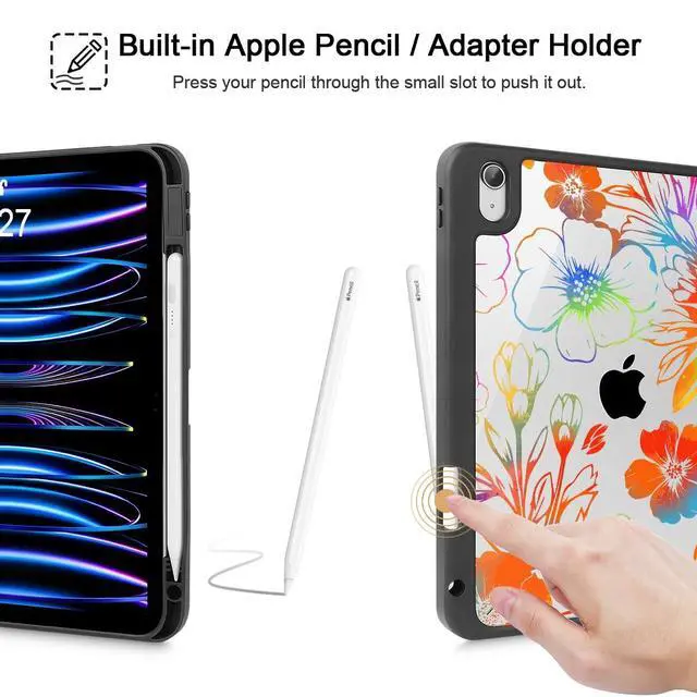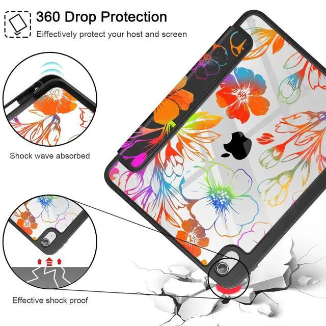 Model: A2757 A2777 A2696. Premium MaterialThe clear transparent back shell is made from durable polycarbonate material, and keeps iPad slim and lightweight in the same time. Multi-pattern ChoiceThe unique patterns created by the designer make your iPad unique and fashion, a perfect gift to your friend or family. Smart CoverProvides auto sleep/wake function with built-in magnetic strip. Trifold Stand CoverFeaturing a tri-fold design, the case stands at the perfect angle for typing and viewing, convenient for daily life and work like watching TV, reading, documents editing, etc. Precise CutoutsNecessary cut-outs for speaker, lighting port, camera and flash, easily access to all buttons without remove the case. PLEASE NOTEColors shown in pictures may slightly differ from actual product due to lighting and color settings. Package include 1 Pack clear Alec Protective Case for iPad 11 inch (A16 chip ) 11th Generation 2025 / iPad 10.9 inch 10th Generation 2022.