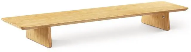Materials: bamboo, cork Assembly required Product Info 1 x Wooden double monitor stand (1 x main board, 2 x side boards) 4 x mounting screws 4 x connectors