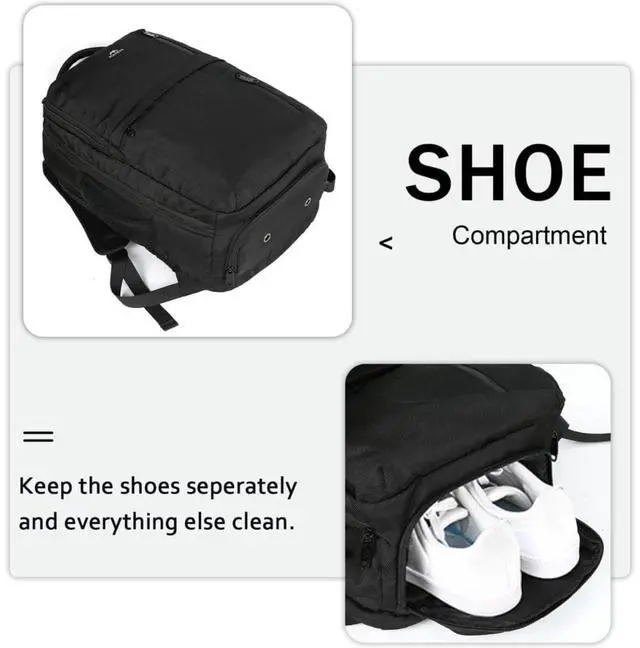 Versatile & Convenient: External USB port with built in charging cable conveniently charges your phone and other electronic devices (pls provide your own portable charger). The shoe compartment at the bottom fits sizes 10-12, keeping footwear separate and odors at bay with breathable venting holes, while doubling as a versatile toiletry or accessory bag. This large travel backpack ensures essentials stay neat, accessible, and travel-readyperfect for business trips or adventures ^^
