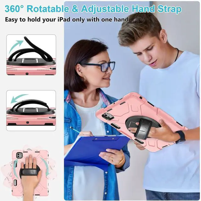 DETACHABLE SHOULDER STRAP: The adjustable hand strap offers easily grip and comfortable hold, it is a must feature when you show your iPad to others. The detachable and adjustable shoulder strap can help you carry your iPad more securely during hiking, traveling other outdoor activities. That can also be used to attach your ipad to the car seat ^^ BUILT-IN APPLE PENCIL HOLDER + PRECISE CUTOUTS +