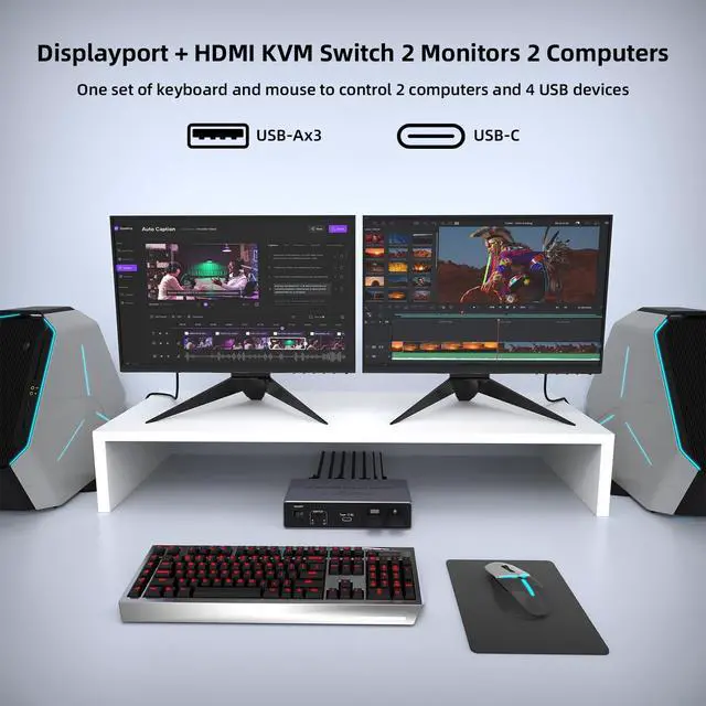 *Important Setup Tip: Each computer must have dual-display capability and be connected using 1 DP+1 HDMI cables + 1x USB-B cable to function correctly. Our dedicated support team is ready to assist you! *