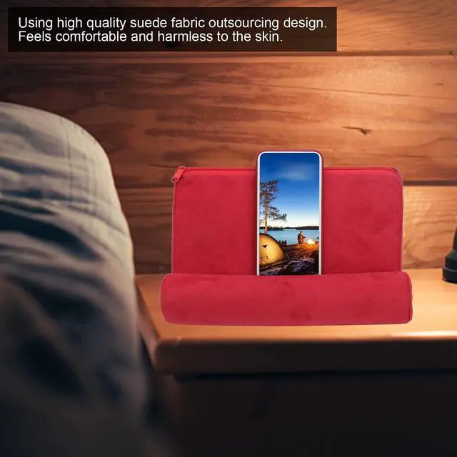 Feature: 1. The portable, lightweight pillow holder can be easily carried or brought into the car, freeing your hands. 2. The pillow stand can be folded, can provide flexible and powerful support for the tablet. 3. It has a large contact area between the bottom and the placement surface, providing a comfortable support for the bed, armrests, carpet, thighs or any other place. 4. Multifunctional design, compatible with most tablet computers, ereaders and smart phones, as well as books, magazines, etc. 5. The outsourcing design is made of highquality suede fabric, which feels comfortable and harmless to the skin.