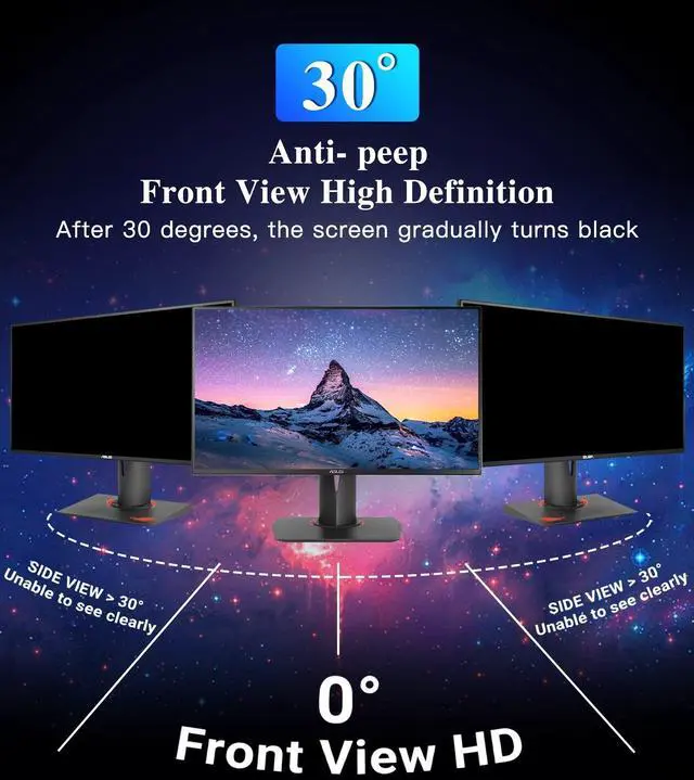 Two mounting methods are available: Method One securely attaches to any computer screen using the clear adhesive strip, Method Two (for computer screens with raised bezels only) easily attaches to the display frame using the slide-on mounting tabs. No complicated settings are required, making them a convenient solution when you need privacy while away. ^^ [Enhanced Privacy and Anti Glare] - Protect your information and reduce eye strain with PYS privacy screen. Advanced anti-glare technology reduces reflections, allowing you to work comfortably even in bright light. Privacy filter limits the viewing angle to +/- 30 degrees, ensuring your sensitive data is safe from prying eyes. Improve your productivity and work with confidence on sensitive documents, emails, and spreadsheets. Choose our privacy screen for enhanced privacy and reduced eye strain. ^^ [Travel and Open WorkSpace] - Our computer screen privacy filter is an ideal solution. Suitable for those who need privacy protection. After using the PYS privacy screen filter, you can work in public areas with confidence, which can effectively prevent others from peeping, taking pictures, or recording screen content, and prevent information leakage. ^^ [Package Contents] - Buy with confidence! Each package includes two privacy screen film x 2, clear adhesive strips x 2, slide mount tabs x 2, and microfiber cleaning cloth x 2.