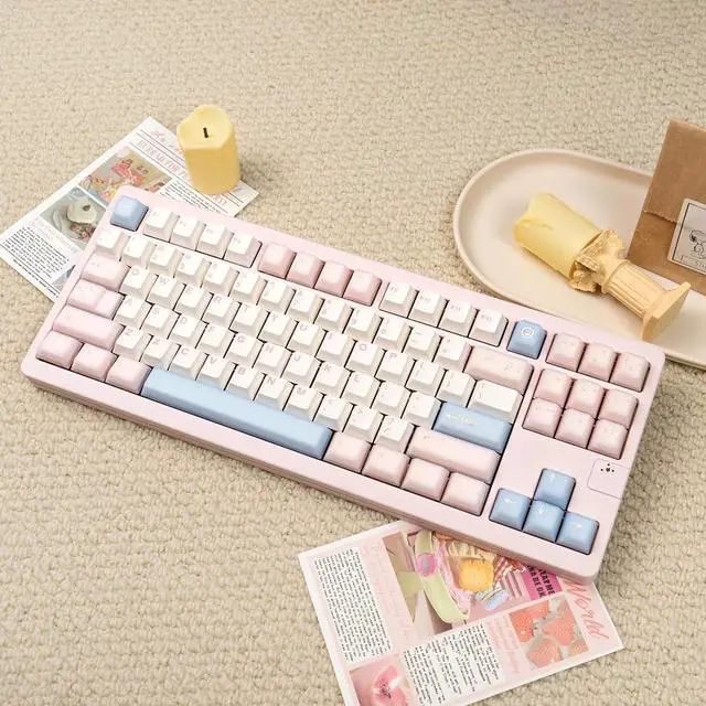 White Peach Oolong Keycaps: Our cute keycaps are inspired by sweet peaches, with light pink bringing a signal of spring, while blue is like fruit and blue sky. Using it, take you into the beautiful spring, bring a touch of tenderness to your keyboard, and add elegance to your office space. When you use it, it's like a flower blooming in your hands. ^^