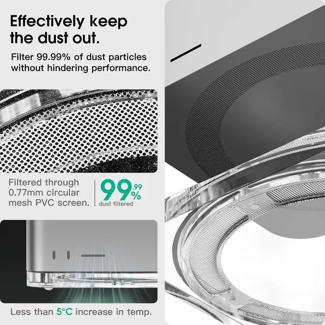 Transparent acrylic mac studio stand, Built in detachable air filtercommodity Dimensions: length 7.7 inches x width 7.7 inches x height 0.59 inches