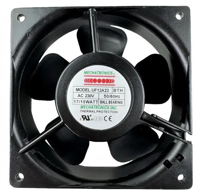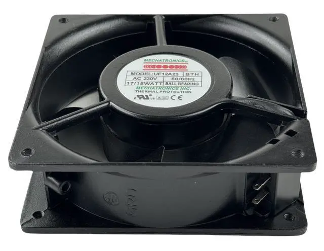 Model: UF12A23-BTHFor Mechatronics Cooling Fan High Temp Fan 12038 High Speed FanFan Size: 120x120x38mm, Voltage230V AC, Wattage: 17/15WNoise Level: 46dBCooling Method: AirMaximum Rotational Speed 3100RPM