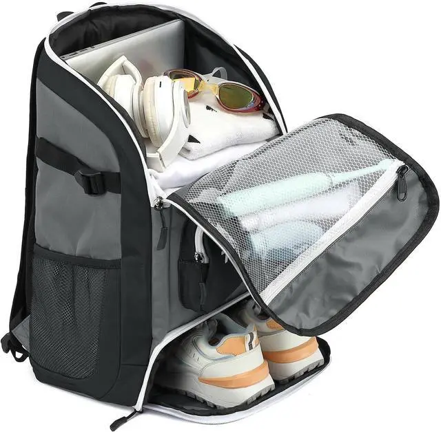 Wet Pocket: The 30l backpack stay prepared for gym with the included wet pocket. And made of high-quality 900D PVC water-Resistant materialthe thickened bottom and reinforced structure ensure long-lasting durability, tear-resistance, and reliability for your everyday journeys. Whether it's rain, spills, or muddy gear, keep your items dry and your backpack in pristine condition. ^^ Ergonomic Design for