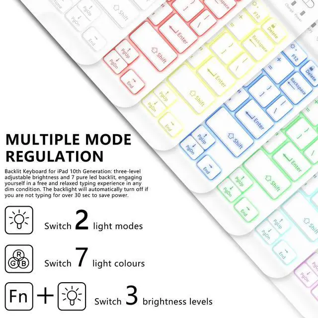 Generation (Model Number: A2696/A2757/A2777). iPad 11th (A16) generation 11-inch 2025 (ModelA3354, A3355, A3356), Please check the model number on the back of your iPad before purchasing ^^ [LED Backlit Keyboard] 2 light modes (Monochromatic and gradient light), three-level adjustable brightness and 7 pure led backlit, engaging yourself in a free and relaxed typing experience in any dim condition. The backlight will automatically turn off if you are not typing for over 30 sec to save power ^^ [Rechargeable Keyboard] The iPad Bluetooth keyboard has a built-in battery with high stability, so you don't need to replace the battery. You can charge the keyboard using the charging cable that comes with the keyboard. The keyboard has a Bluetooth acceptance range of 10 meters. If you don't need to use the keyboard, you can remove it and turn it into a regular iPad case, which makes for a handy experience ^^ [Automatic Sleep/Wake] This iPad case will automatically put your iPad to sleep when you close the front cover of the case. Because an iron keyboard may prevent magnets from attracting to each other, remove the keyboard for optimal sleep/wake up.