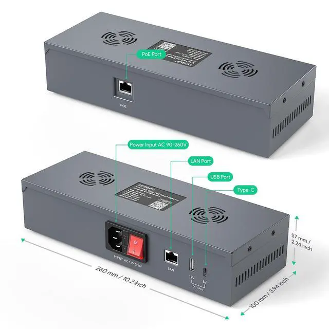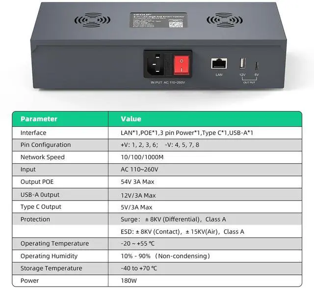 ^^ Blazing-Fast Gigabit Connectivity: Delivers Gigabit Ethernet speeds with consistent power delivery (DC 54V 3A/200W), enabling seamless data transmission for an enhanced Starlink internet experience. ^^ Advanced Protection and DurabilityFeatures built-in surge and ESD protection, capable of withstanding extreme conditions (-20C to +55C) and high humidity (10%-90% non-condensing), ensuring reliability and long-lasting performance. ^^ Hassle-Free InstallationDesigned for quick and easy setup with Starlink Gen 3, utilizing the original cable without requiring wire cutting. Its secure design prevents loose connections caused by frequent plug-and-play usage. ^^ Versatile Power OutputsEquipped with a LAN output, USB-A (12V/3A), and Type-C (5V/3A) power outputs to support a wide range of devices, including computers and routers. Perfect for integrating your network with the Starlink internet kit.