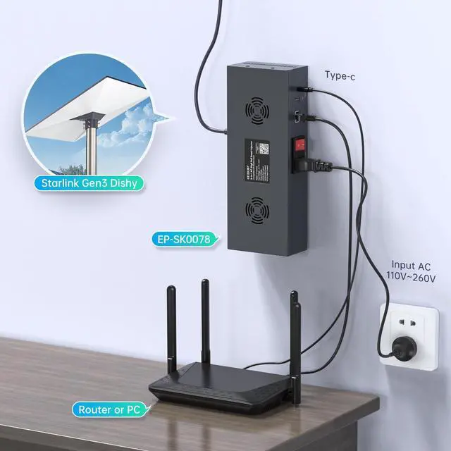 High-Powered Performance: Efficiently converts AC 110-260V to DC 54V 3A with up to 200W of power, ensuring reliable operation for the Starlink Gen 3 satellite dish. Includes a built-in 180W PoE injector and a 20W booster, perfectly engineered for stable and uninterrupted connectivity.