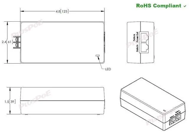 Features: 1 RJ45 Ethernet Data Input Port + 1 RJ45 Power over Ethernet Output Port (Data + Power)Support 10/100/1000Base-TXExtensive LED indicators for PoE diagnosticsDC 12-36V Terminal Block Power inputs Solar and Battery ApplicationsEnvironmentally Hardened -40C to 80C (-40F to 176F) operating temperature
