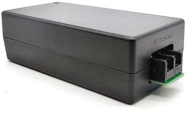 DC to DC Gigabit PoE Injector, IEEE 802.3 af/at PoE+ InjectorIdeal for Solar and Battery ApplicationsTransforms a 12-36 volt DC source into a regulated 802.3 af/at PoE device, ideal for powering ePMP2000/3000, Force 400/425, RAy 3, Q61 and the replacement of high c/p for N000045L056A, TP-DCDC-1248GD-HP, TP-DCDC-2448GD-HP Devices and others. It can output 30 watts, plenty for most IP phones and cameras. Diodes isolate the RJ45 power input from DC input, making it compatible with variable solar, DC, PoE power sources.