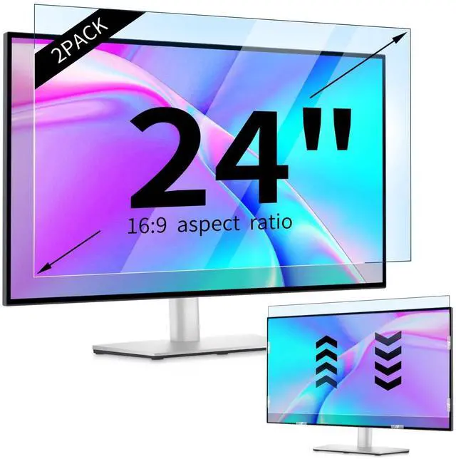 The highly transparent and highly powerful protective layer not only presents high-definition picture quality, but also protects your screen from scratches. It is not only waterproof and washable, but also reusable. ^^ HIGH TRANSPARENCY BLUE LIGHT FILTER The blue light monitor screen protector has a light transmission rate of 85%, which won't put any burden on your computer. This computer anti blue light glare protector is all-encompassing, ensuring image clarity without reducing screen brightness, not to mention pixelation, maximizing the life of your monitor and battery. ^^ EASY TO INSTALLThis blue light screen protector 24 inch monitor comes with a 16:9 aspect ratio "frameless" display.