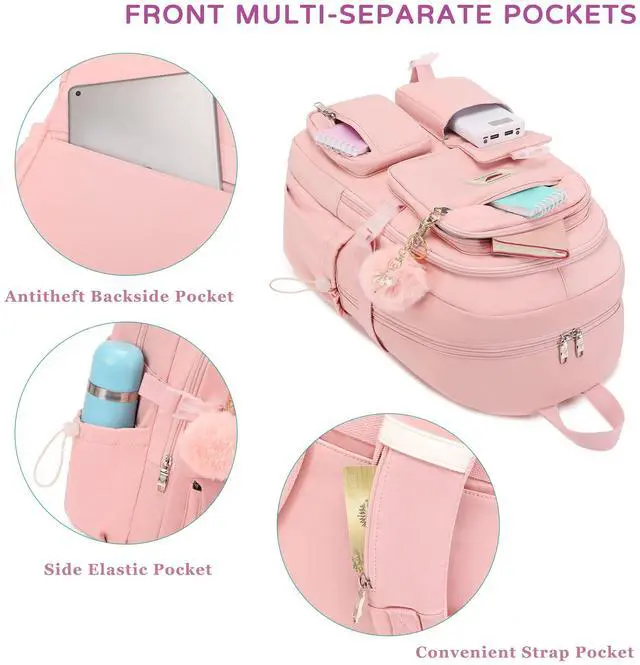 Multi-compartments & Large Capacity: The travel backpack for women has 7 separate different compartments and two side elastic pockets. The front three pockets can hold charge device and other small items. The main compartment of includes laptop padded sleeve with elastic belt. The front tool compartment also come with multiple pockets to provide roomy space for necessities. The back zipper pocket can protect your important items from theft. ^^ For Any Ages & Occasion The lightweight backpacking purse is stylish enough for casual and student use, while the design provides the multi functionality. Backpack perfect for young teens, girls, ladies. The basic multipurpose daypacks for most of your needs, easy to match your cloths, suitable for short trip, travelling, work, shopping, university, elementary school, etc.