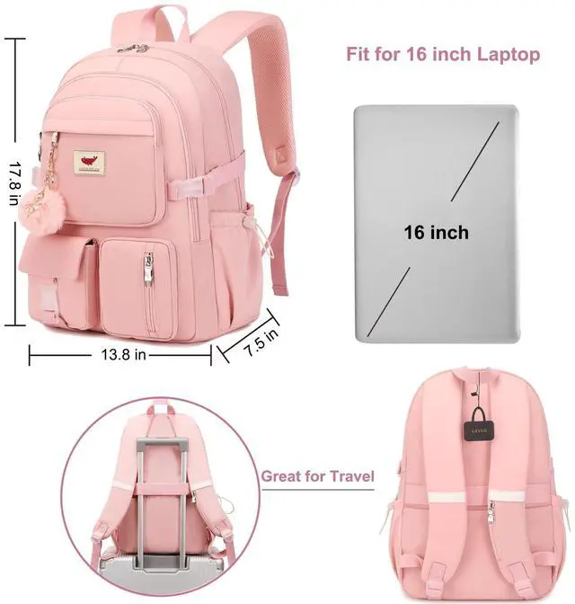 Large Size & Gift: The size of back pack is 13.8" x 7.5" x 17.8" (L*W*H), Weight: 1.65 LB. The laptops bag with padded compartment sleeve fit for 13.3, 14, 16 inch tablet. This women book bag also along with fluffy ball key pendant as gift makes the bags more fashionable and unique ^^ Waterproof