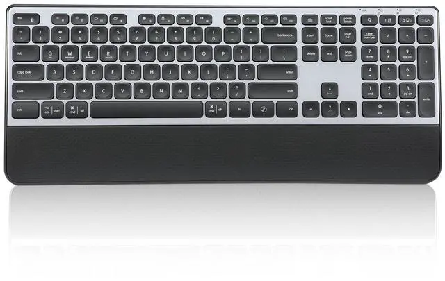 Wireless Bluetooth Keyboard: The red power indicator lights up while charging and automatically turns off when fully charged. With the backlight off, a full 45 hour charge provides up to 60 days of use. When the backlight is on, battery life lasts about 2-3 days. Includes a USB-C charging cable and supports charging while in useideal for uninterrupted work and productivity. ^^ Wireless Keyboard with Wrist Rest for