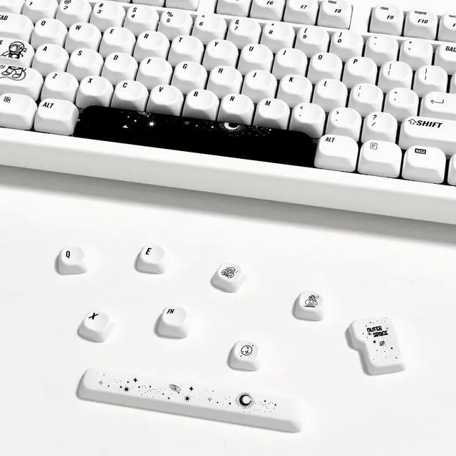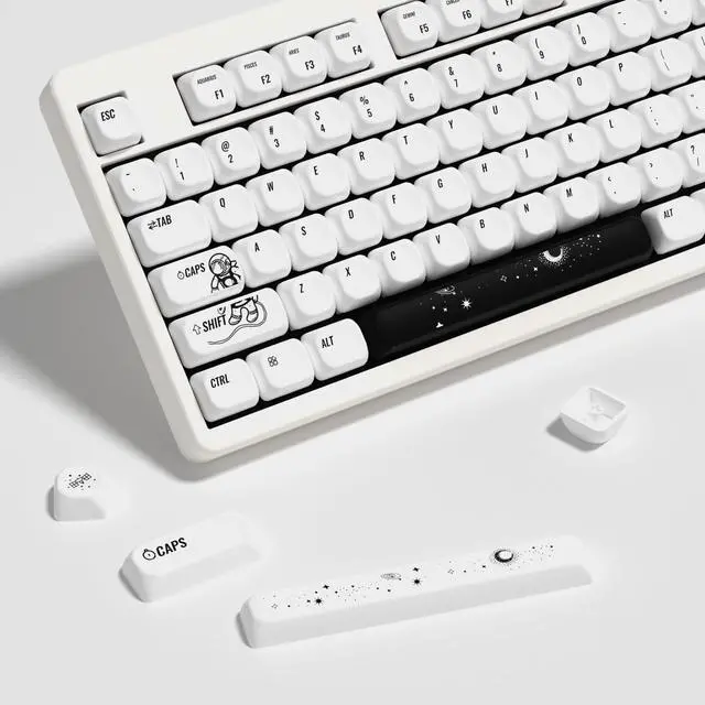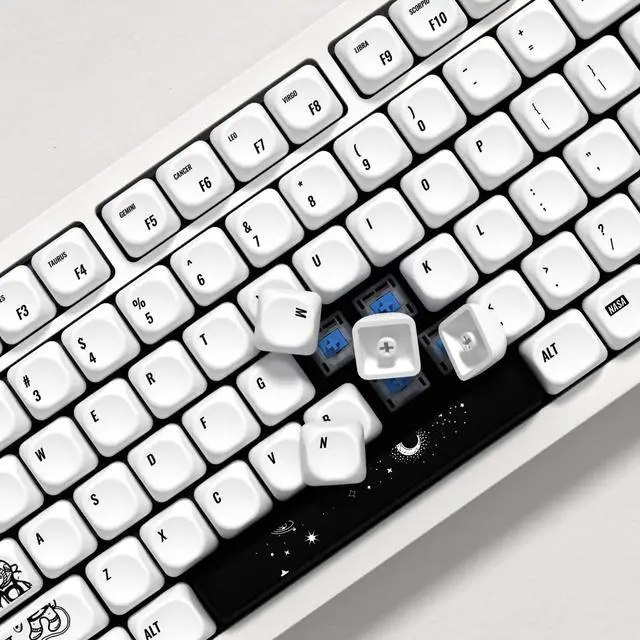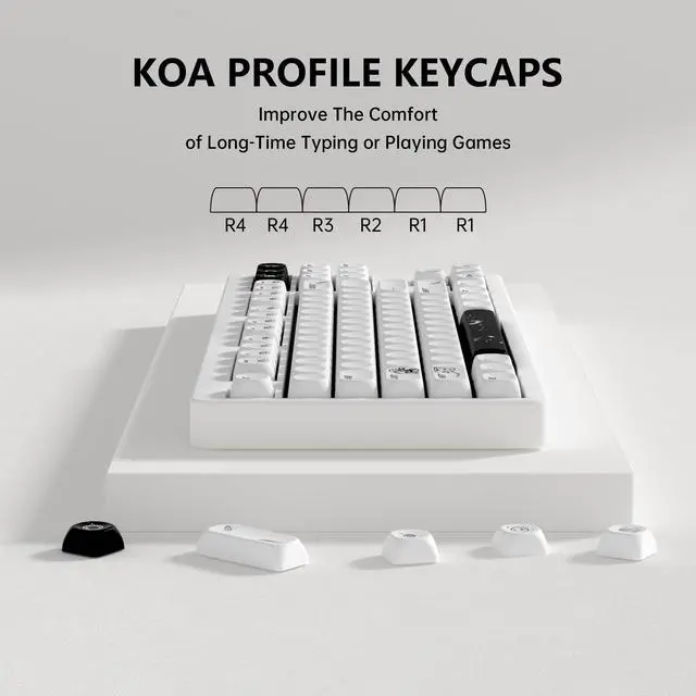 KBDiy KOA Profile-KOA Profile similar to MOA Profile, Ergonomic Arc layout, concave arc, fingers contact the keycaps in a larger area, the touch is smoother, making you feel more comfortable when using ^^ Accessories Included-This keyboard keycap set consists of 135, Keycaps do not include the keyboard. The keyboard in the picture is for display purposes only. Orange, blue, and white keycaps make up the Soymilk series, so you can DIY your keyboard to your heart's content ^^ Dye Sublimation PBT Keycaps-The patterns on the keycaps use dye-sublimation technology to never fade.