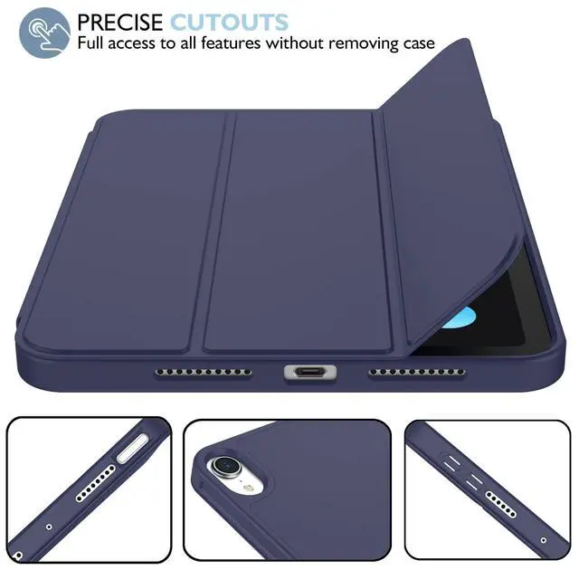 iMieet iPad mini 7 Case 2024 (A17 Pro), iPad mini 6 Case (8.3-Inch,2021 Model), iPad mini 7th/6th Generation Case with Pencil Holder, Trifold Stand Smart Case with Soft TPU Back,Dark Blue