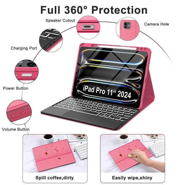 Keyboard Case for iPad Pro 11-inch (M4) This keyboard case ONLY compatible with iPad Pro 11 inch (M4) 2024 (Model: A2836 / A2837 / A3006). It is Not compatible with any other models. Please check the model number starting with "A" on the back of your tablet before purchasing. Keyboard can compatible with iOS, Android, Windows. ^^ Rechargeable and Long Life Battery for iPad Pro 11 inchOur iPad Pro 11 inch case with keyboard built-in 500mAh large capacity battery, which is more energy saving and lower consumption, ensuring you can use it for at least 75 hours ( Non-backlit) and 5 hours ( backlit). It can be fully charged in 3-4 hours with Type-C charging cable for the first time, no need to replace the battery. its Automatic Sleep Mode helps conserve battery power. Boost productivity with keyboard featuring a precision trackpad and multi-touch gesture support. ^^ Multi-Touch Gestures TrackpadThis for iPad keyboard case integrated multi-functional touchpad for iPad keyboard Pro 11" which built-in high sensitive trackpad, allows you enjoy the convenience of performing multi-finger gesture control (like tap, swipe, scroll and switch apps). Use a trackpad for precision tasks. Scroll, swipe, and zoom effortlessly, do not need a mouse.