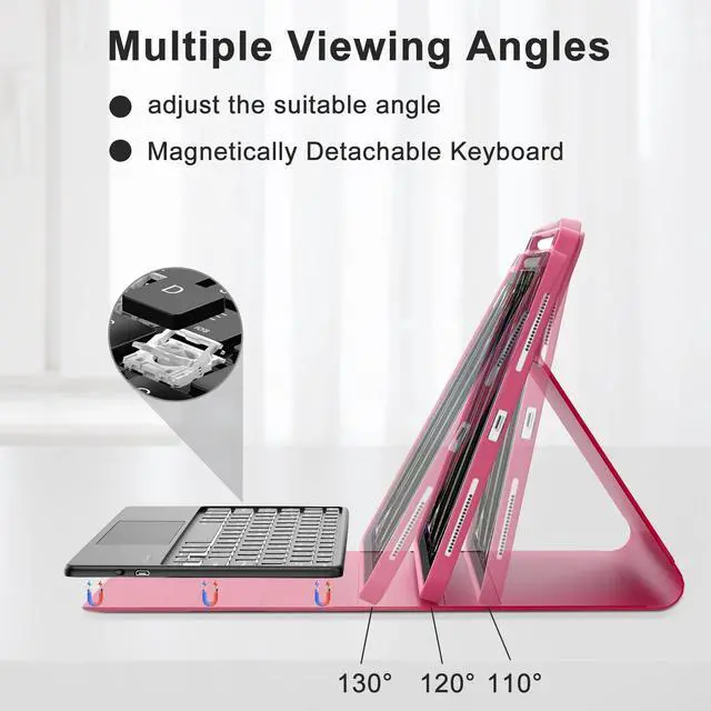 The responsive and intuitive trackpad enhances your using efficiency. ^^ Magnetically Detachable KeyboardThis for iPad Pro 11 case with keyboard is magnetic so it can be easily positioned or removed from the case. Shortcut keys are designed to let you power through advanced workflows and do all the things you love with ease and simplicity. In a few seconds, it transforms into a laptop for your multiple usage needs such as typing, reading, viewing and drawing. ^^ Multiple Viewing Angles & Adjustable 7 Colors Backlit KeyboardThis for iPad Pro keyboard case 11 inch has 3 grooves to adjust the viewing angle as you like, make your tablet stand steadily. Turn your tablet into a laptop in one second, ideal for office, school or home use. This for iPad 11 Pro case with keyboard is designed with laser-etched backlit keys that allow 7 vibrant colors and 3 levels adjustable brightness to shine in the dark, illuminated typing is more fun and atmospheric.