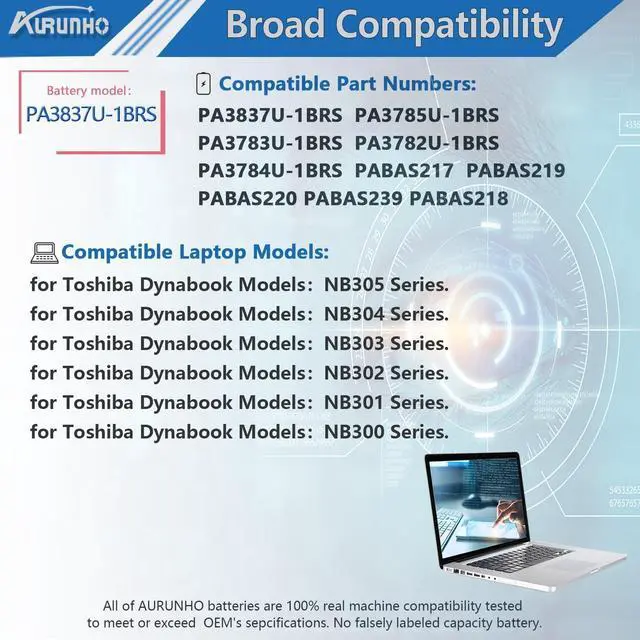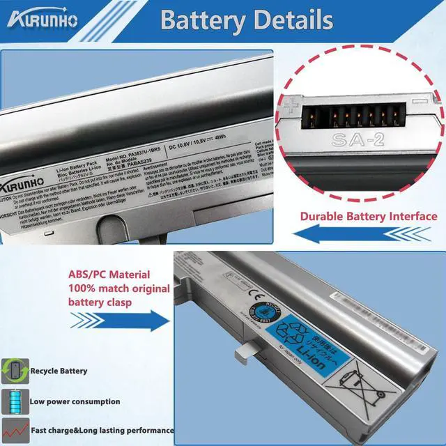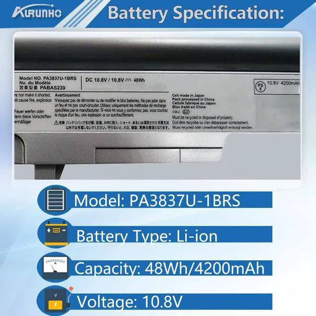 PA3837U-1BRS connector: 8pin White, 10pin White and black connector. These listing we are selling is 8pin & White connector!! ) ^^ SecurityALL of our battery is CE, FCC, RoHS Certified. And have passed a series tests of short circuit, overheating, and overload protection before shipments for safety. ^^ AURUNHO After-sales We guarantee 30 days money-back and 12-month warranty; 24 x 7 email support. For any battery questions you fell free to contact us via "Your Orders" tab in your account, we will be glad to help you within 24 hours.