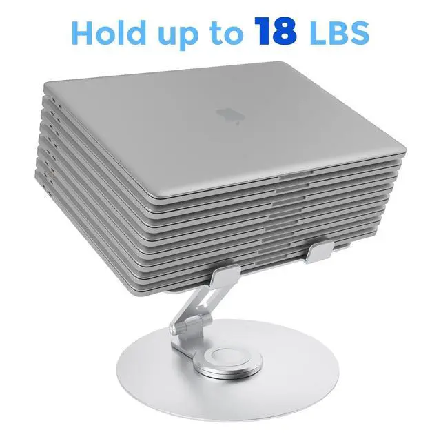 Rotatable: With a 360 rotatable turnable attached to the base, this laptop stand is supported by strong axis, allowing its top half to swivel flexibly to any angleso it's perfect and convenient for you to share the laptop's screen to your partners especially for collaborative work at the meetings.