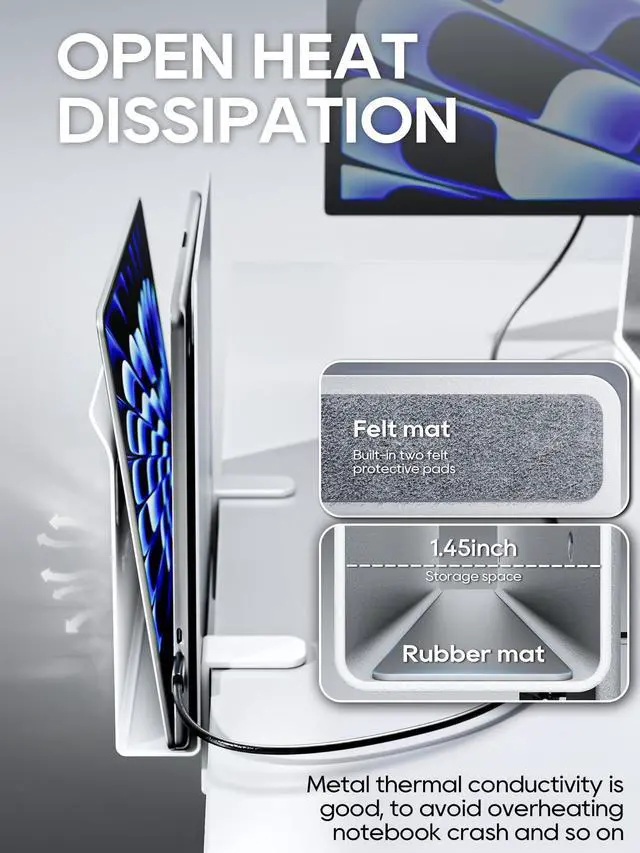 Designed by Japanese Designers----The laptop storage rack is designed by a Japanese designer who is deeply involved in home design. The unique appearance and more advanced colors can perfectly blend into your home/office decoration style instead of being out of tune ^^ Two Installation Methods----The top and bottom of the desktop organizer are designed with mounting holes, so the holder can be installed under/above the desk at will. Note that the thickness of the installed desk must be less than 2 inches. ^^ Ultra-high-quality Raw Materials----Made of ultra-high-quality steel, the double cost makes the laptops stand 1mm thicker than other brands.