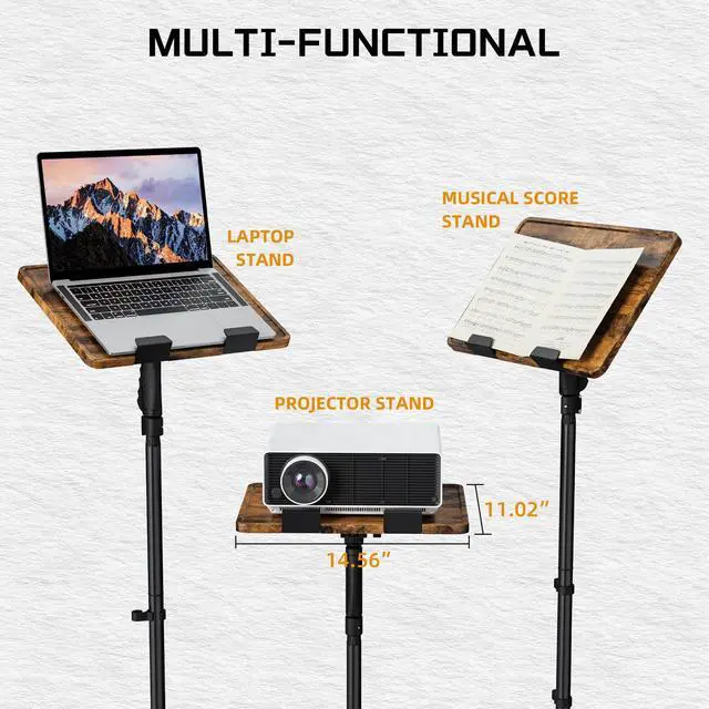 The robust construction ensures reliability in both professional and home environments. This stand maintains stability on various floor surfaces. ^^ Multi-Scene Versatility This laptop floor stand adjustable height accommodates laptops, projectors, and DJ equipment. Ideal for home gatherings, business meetings, office work, and outdoor activities. The versatile design supports entertainment, presentations, and creative performances. Enjoy flexible positioning that adapts to different environments and usage needs with reliable stability. ^^ Heavy-Duty Metal Construction Built with heavy-duty metal, this projector stand tripod ensures lasting durability. The sturdy metal frame maintains perfect stability in demanding settings like studios and stages.