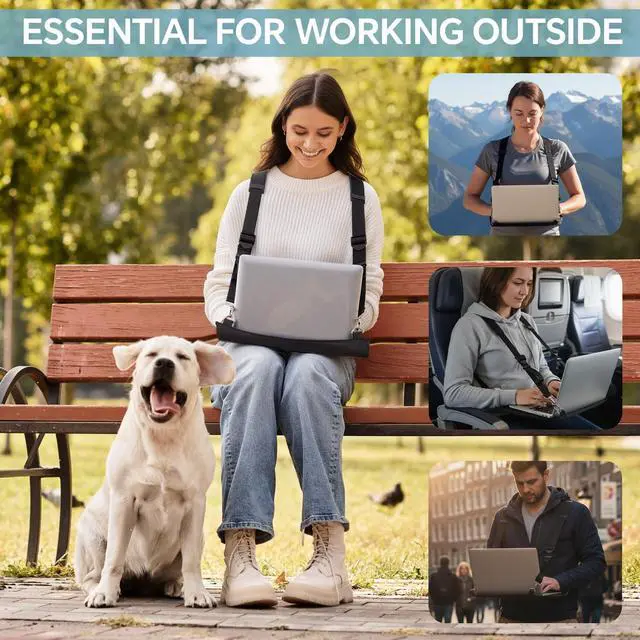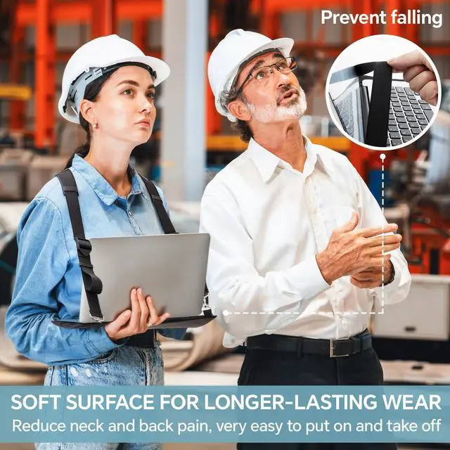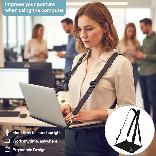 Features: Beyond functionality, this wearable laptop stand boasts a refined aesthetic with its classic black finish, it seamlessly integrates style with practicality, providing convenience while working. This laptop strap will be a nice gift for office workers, allowing them to work in a standing position, improving posture and reducing the effects of sedentary behavior.