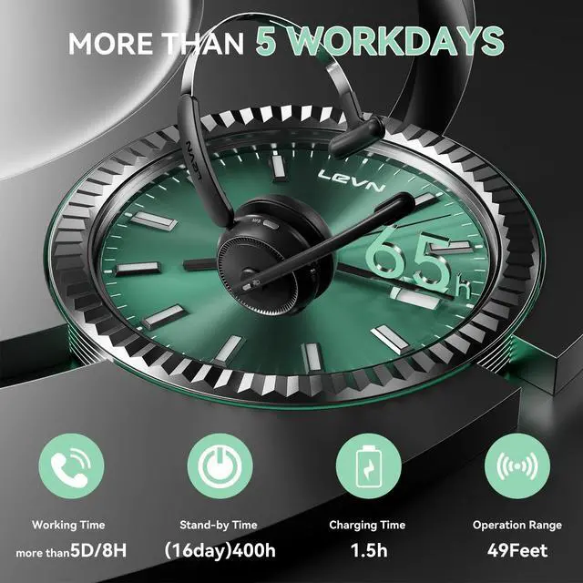 [Advanced AI Noise Cancellation] This wireless headset features advanced AI-driven noise cancellation, effectively eliminating up to 99% of ambient sound. It intelligently filters out common distractions such as keyboard taps, office conversations, and background calls to ensure your voice is transmitted with exceptional clarity. Ideal for remote work, virtual meetings, call centers, and busy environments, the wireless headset with mic for work guarantees professional audio quality wherever you are.