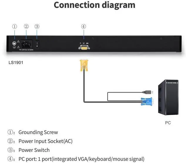 ^^ User-Friendly Design: Connect to a server or computer via the standard VGA connector. This LCD KVM Console features a full-size 99-key keyboard with an integrated number pad and a touchpad with a scroll wheel, eliminating the need for an external mouse. This design enhances user comfort and increases productivity in managing and monitoring systems.