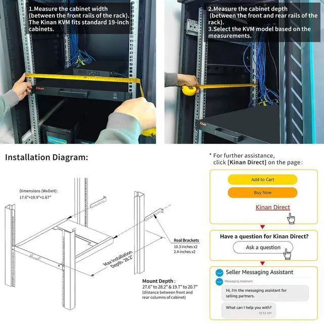IMPORTANT NOTICE: Measure the depth of your rack cabinet (distance between the front and back columns) before purchasing to ensure this KVM console fits properly.