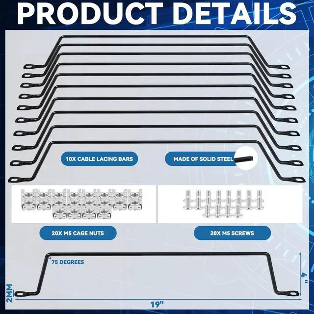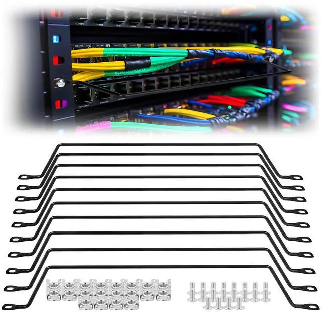 Steel Rods: crafted from solid steel, these 10 cable management rods ensure exceptional load-bearing capacity, resisting bending unlike flat rods, providing robust support for your cabling needs ^^