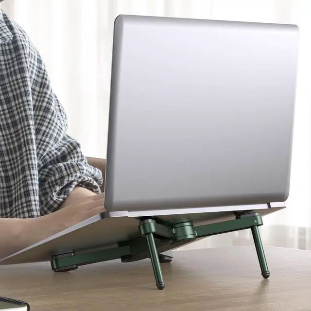 YICOSUN New Concept Laptop Stand - Adjustable Ergonomic Aluminum Riser for MacBook Pro/Air up to 15.6 - Foldable & Portable Computer Stand for Desk, Students, Office, Travel, Gaming - Green