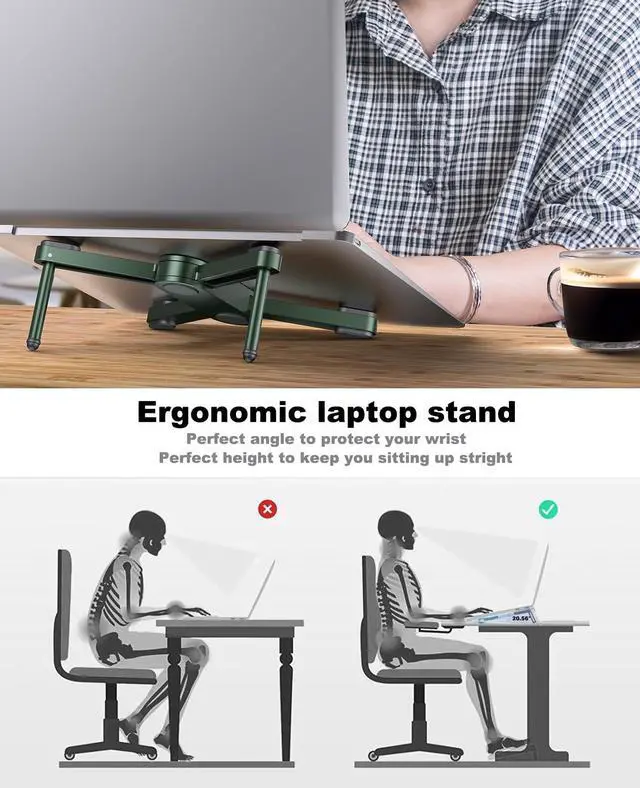 • Ergonomic Aluminum Laptop Stand for DeskYICOSUN X1 laptop stand lifts your laptop screen to just the right height, so you wont have to crane your neck or hunch your shoulders after hours of work, study, or gaming. Made from high-quality aerospace-grade aluminum, its built tough but feels light enough to use all day.
