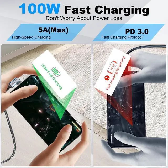 100W Fast Charging The usb c extension cable offers charging speed up to 100W(20V/5A). 100W fast charging usb c male to usb c female cable will incredibly fast fuel your phone up to 90% in 35mins, which brings a convenient charging experience and amazing game experience.