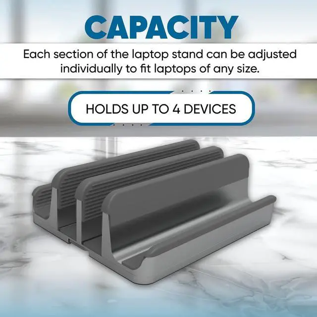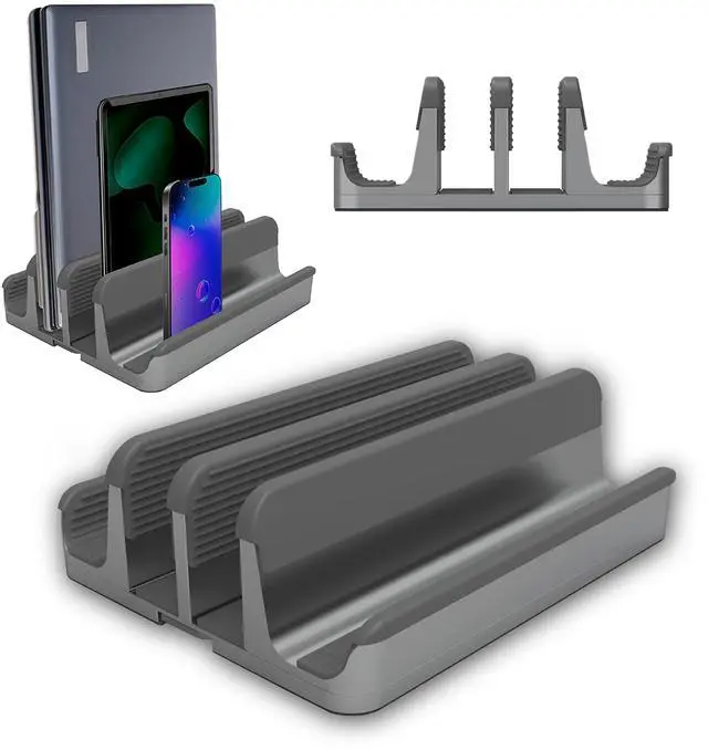 • Hold more devices: Dock up to 4 laptops, or tablets or mobile devices in a single stand. Our laptop organizer has 4 adjustable slots design to hold devices up to 17.3 inches, including heavy gaming laptops. A perfect aluminum laptop storage rack for multiple laptops.
