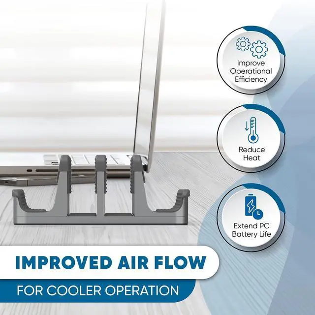 • Modern Design & Laptop Holder: Elevate your workspace experience with this high grade aluminum finish vertical laptop holder; cradle and hold your laptop, MacBooks, or mobile devices in style, while reclaiming 80% of your desk space. This laptop holder vertical saves valuable desk space, protects your device from spills, provides better cooling and 360- degree airflow with this premium vertical laptop holder.