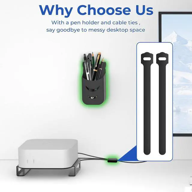 List: 1Stand for Mac Mini M41Pen holder1Cable ties