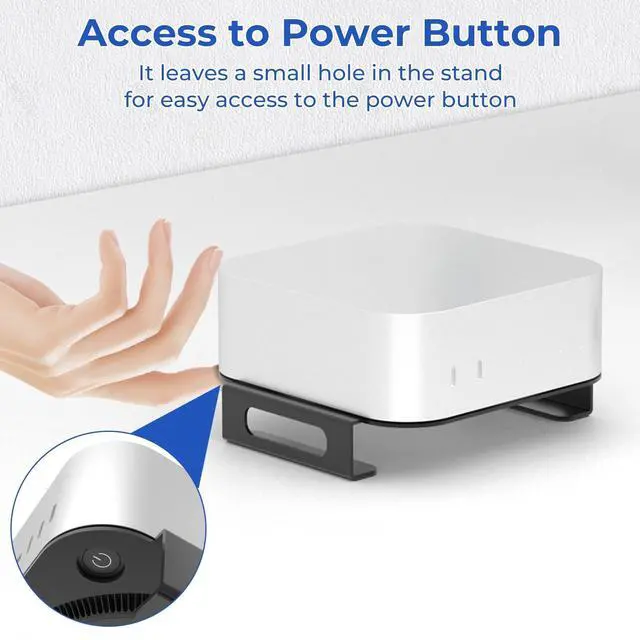 Button Access: The desktop holder for Mac Mini M4 features a power button slot for easy access, allowing direct startup without affecting the device's use. The R-shaped curve design ensures a perfect fit between the Mac mini and the standAnti-scratch and