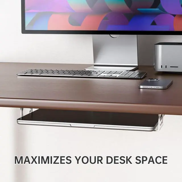 NiHome Clear Acrylic Under Desk Laptop Mount, Easy Installation Adjustable Laptop Holder, Scratch-Resistant Under-Desk Stand for MacBook, Notebook, Modem, TV Box, PS4 Slim, Keyboard and More