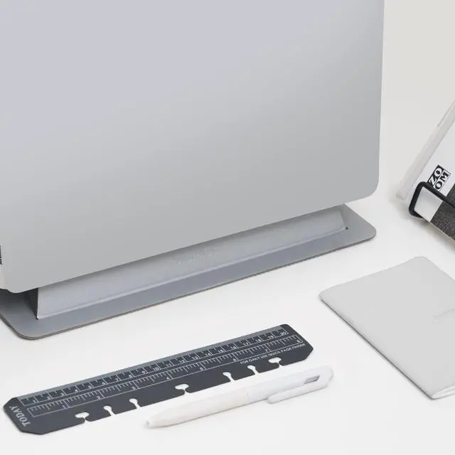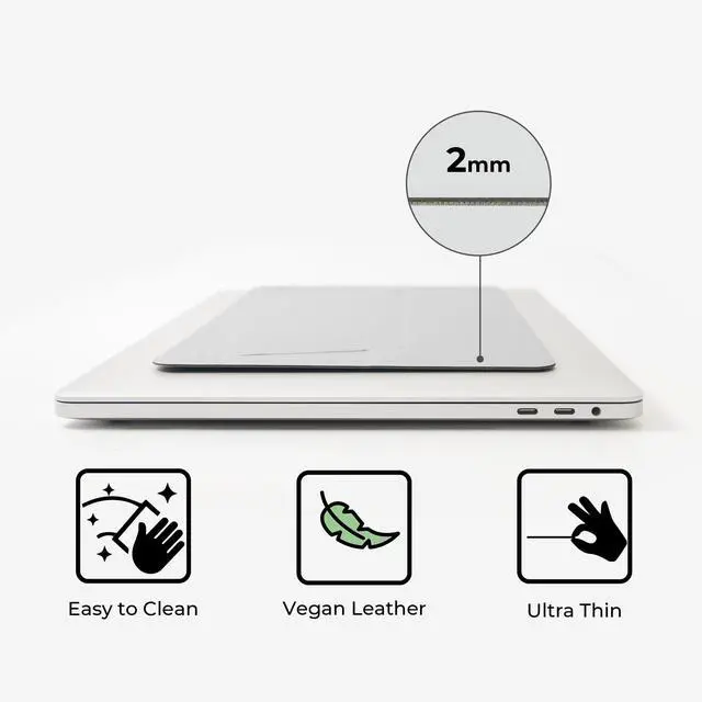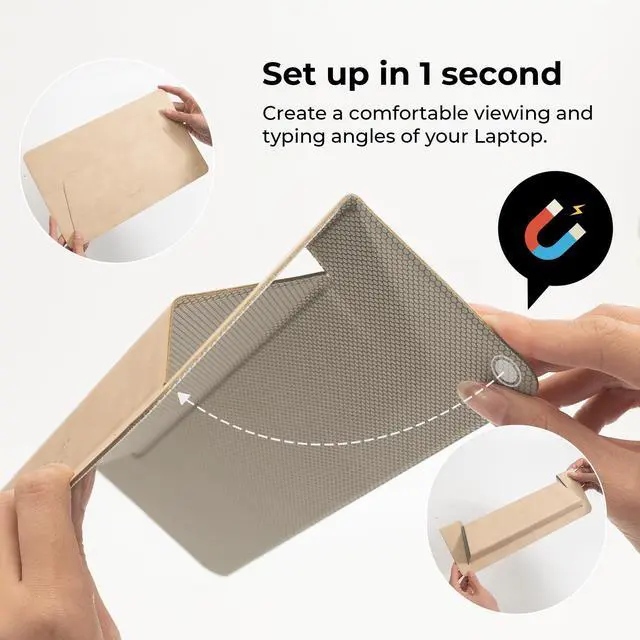 Foldable & PortableThe Ultra-Slim Laptop Stand weighs only 6 oz and is slim as a coin with 2mm thickness. The foldable laptop stand is suitable for mobile working in the office, coffee shop, on the sofa, or wherever. A portable laptop stand is available anytime and anywhere for space saving. ^^ Unique MaterialDurable PU and fiberglass material are strong and stable enough to hold up to 20 lbs. The laptop stand is compatible with a wide range of laptops or tablets up to 15.4 inches. ^^ Ergonomic DesignThe slim laptop stand elevates your laptop by 3 cm to improve body posture and prevent you from hunching over your screen, which reduces neck and shoulder pain.
