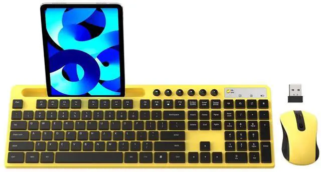 MARVO Wireless Keyboard and Mouse Combo (Battery Not Included); ^^ 2.4G Ergonomic Wireless Computer Keyboard with 9.84 inch Phone Tablet Holder; ^^ Silent Mouse with 6 Button(800/1200/1600 DPI Adjustable); ^^ Compatible with Windows XP / Vista / 7 / 8 /10 and MACOS operating systems; ^^ MARVO Provide 12-month Worry-free warranty and friendly customer service; ^^ When connection, red power light will blink for 5-8 seconds and then turn off, in low battery mode, red power light will blink when you press any key. So it is normal for the red light to blink for 5-8 seconds when you first start using the device.